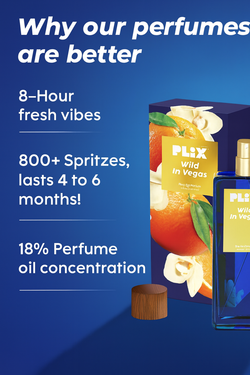 The image showcases a perfume product from the brand PLIX.